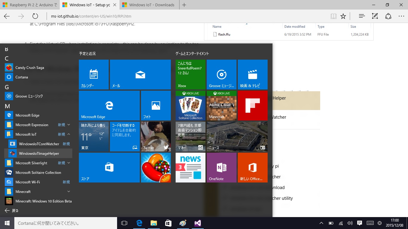 As the open file dialog appears, please select flash.ffu, which is located at Microsoft IoT > FFU > RaspberryPi2.