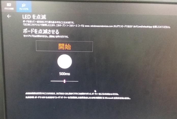 From its tutorial menu, you can boot an application for demonstration. This application allows an LED, which is attached to Raspberry Pi 2, to brink.