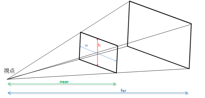 Figure6: projective transformation and viewport transformation “w” and “h” constitute the ratio of screen (Viewport) “near” and “far” indicate distance between the view point and the near grip surface and far grip surface, respectively. A distance are measured between the view point and each a surface.