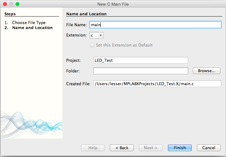 Type in “LED_Test” at Project Name, and select “UTF-8” at Encoding. Then, click “Finish”