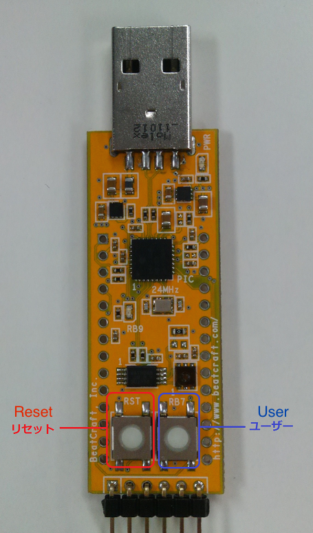 BC-USB-Kit is equipped with two buttons. To put the USB connector of BC-USB-Kit at the position of 12 o'click (top), the left button is the reset button. The right button is the programmable button.