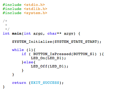 To rewrite "main.c" as shown below, the LED light up while you push the user button.