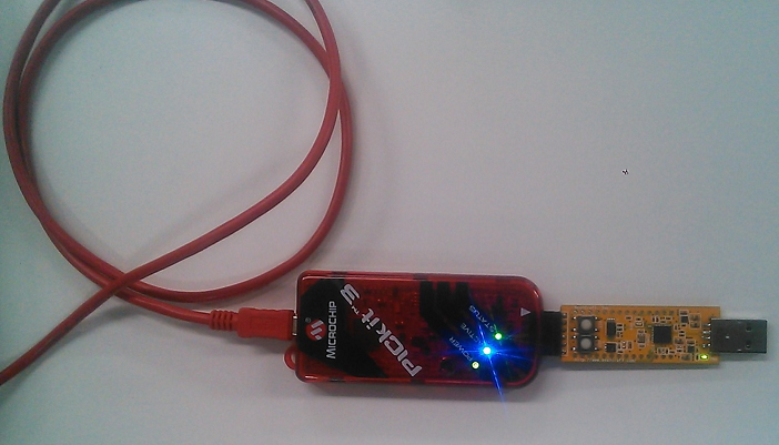 If the color of status LED at PICkit 3 turns to green, it means the system is working correctly.