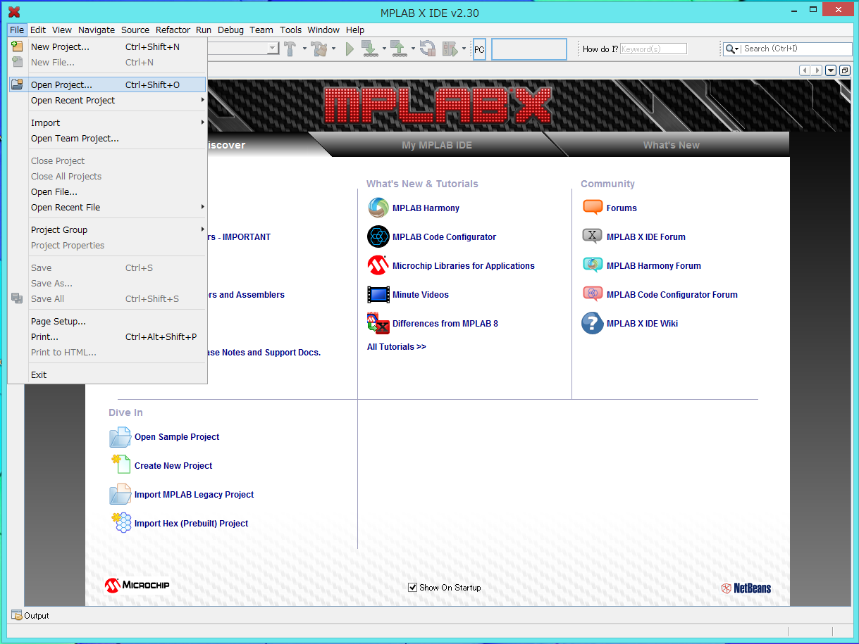 - From the menu of MPLAB X IDE, select File →Open Project...