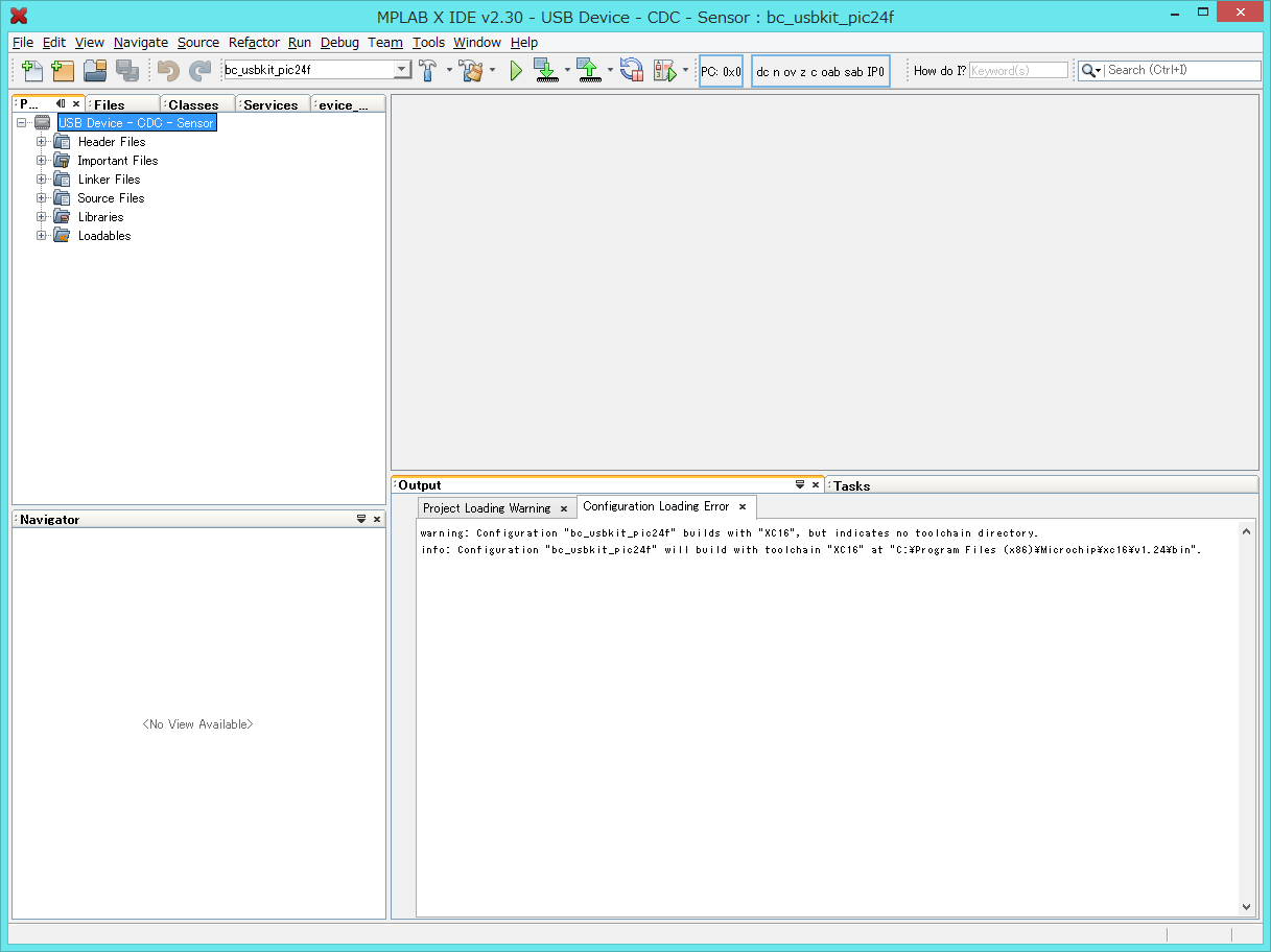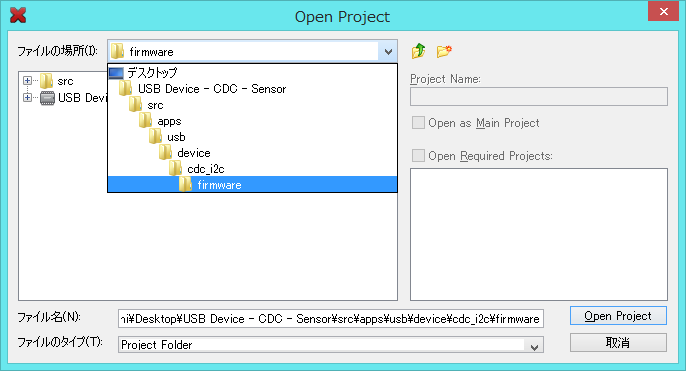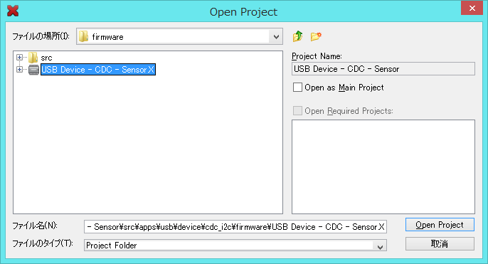 Open Up “USB Device - CDC – Sensor.X,” which is located at the directory of “USB Device -CDC- Sensor\src\aps\usb\device\cdc_i2c\firmware\.”
