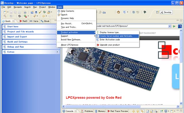 LPCXpressoの「Help」->「Product activation」->「Enter Activation code」