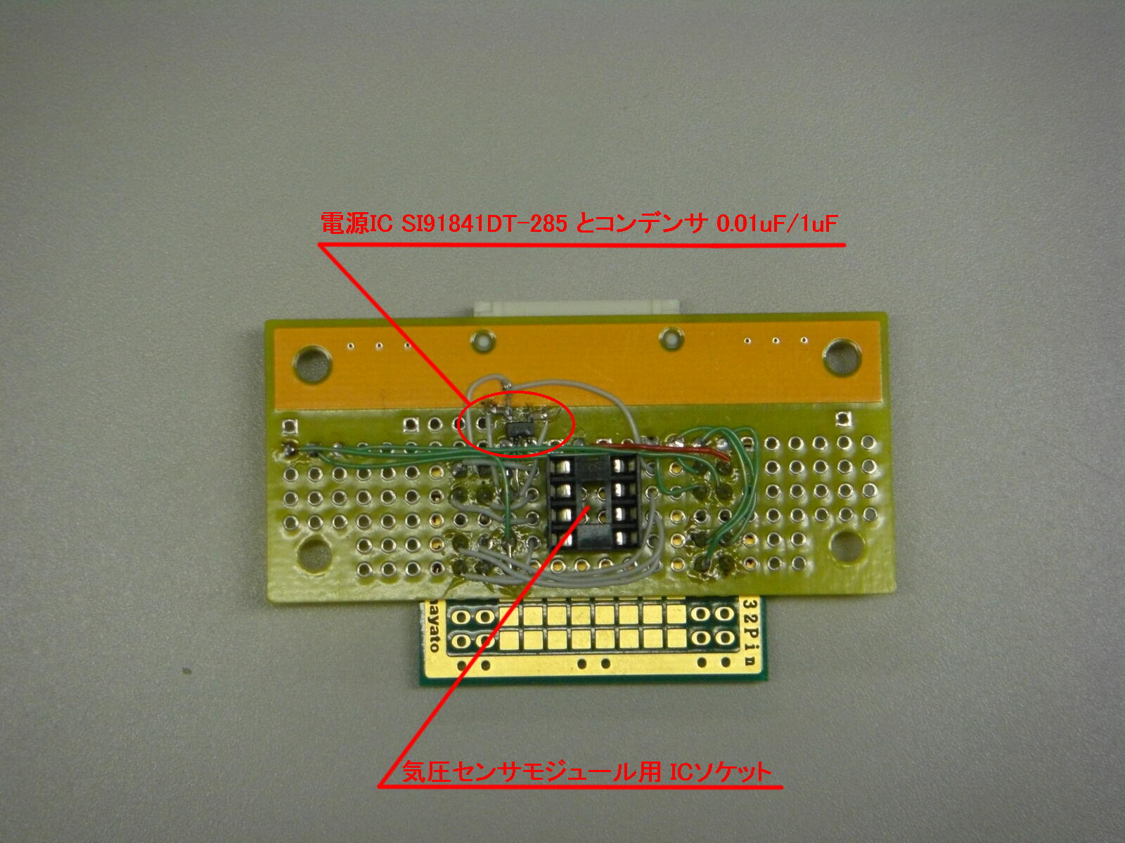 - 気圧センサモジュールを取り付けるためのICソケットを実装します。各ピンから