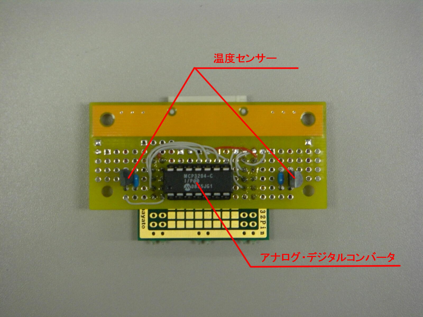 秋月電子さんで発売されています、温度センサと ADコンバータ を実装してみました。
